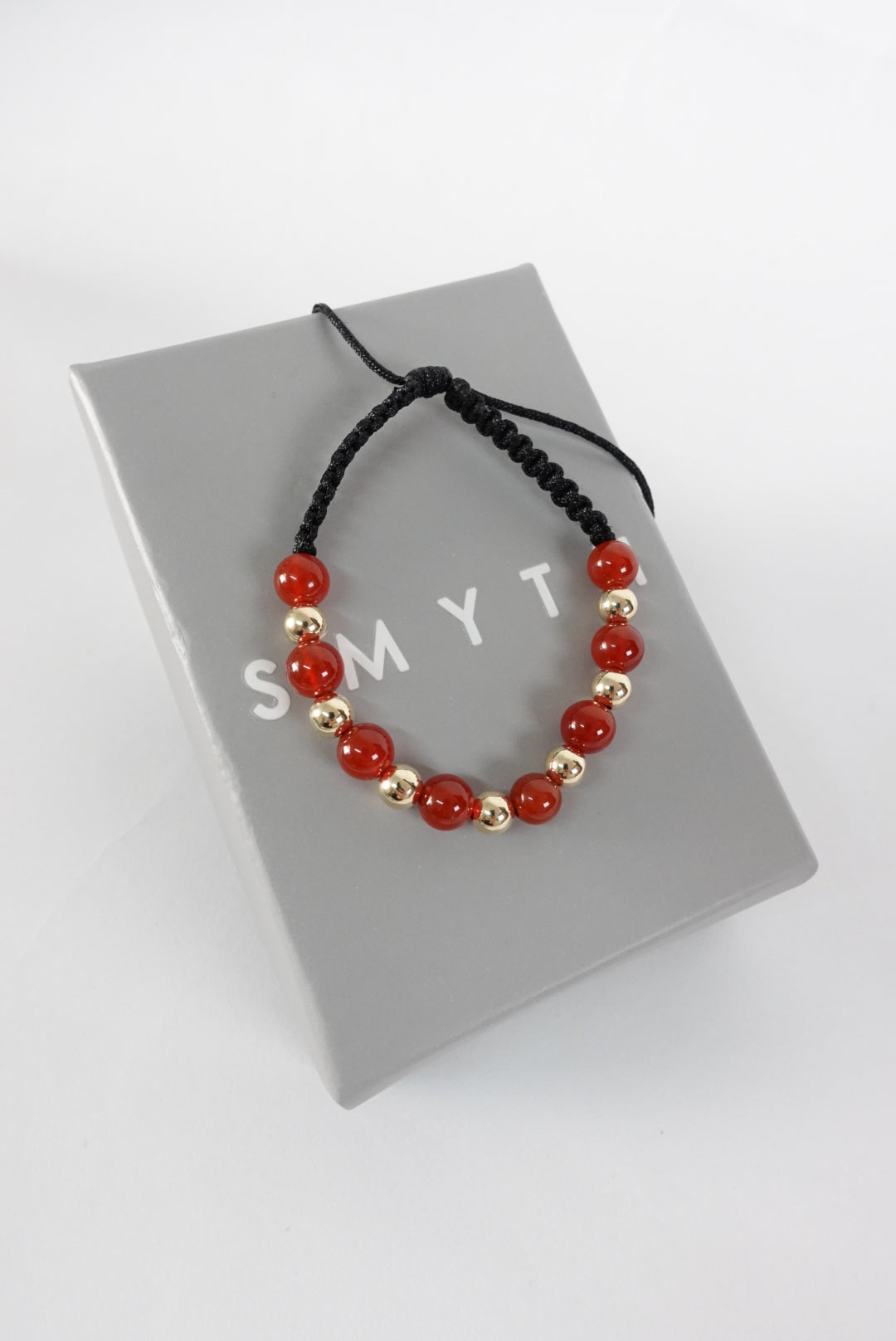 Pulsera elaborada en hilo con piedras naturales 6mm, acompañadas de balines lisos 5mm en oro laminado 18k.