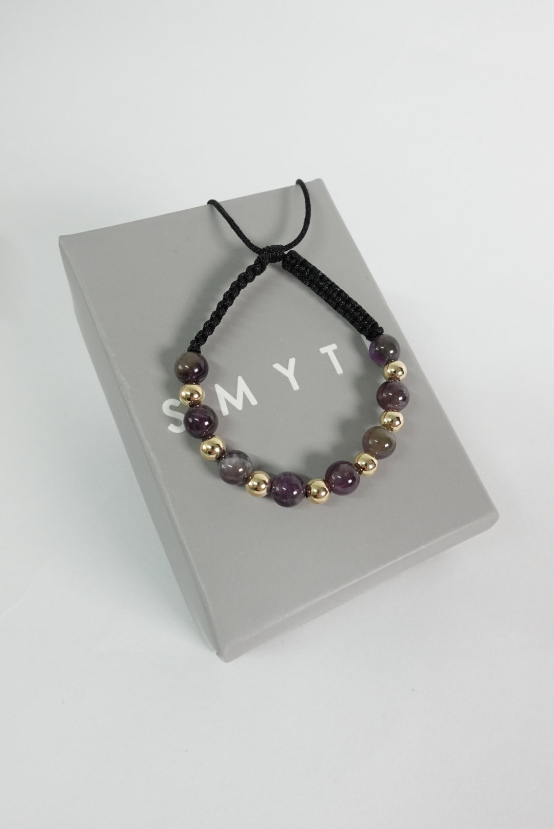 Pulsera elaborada en hilo con piedras naturales 6mm, acompañadas de balines lisos 5mm en oro laminado 18k.