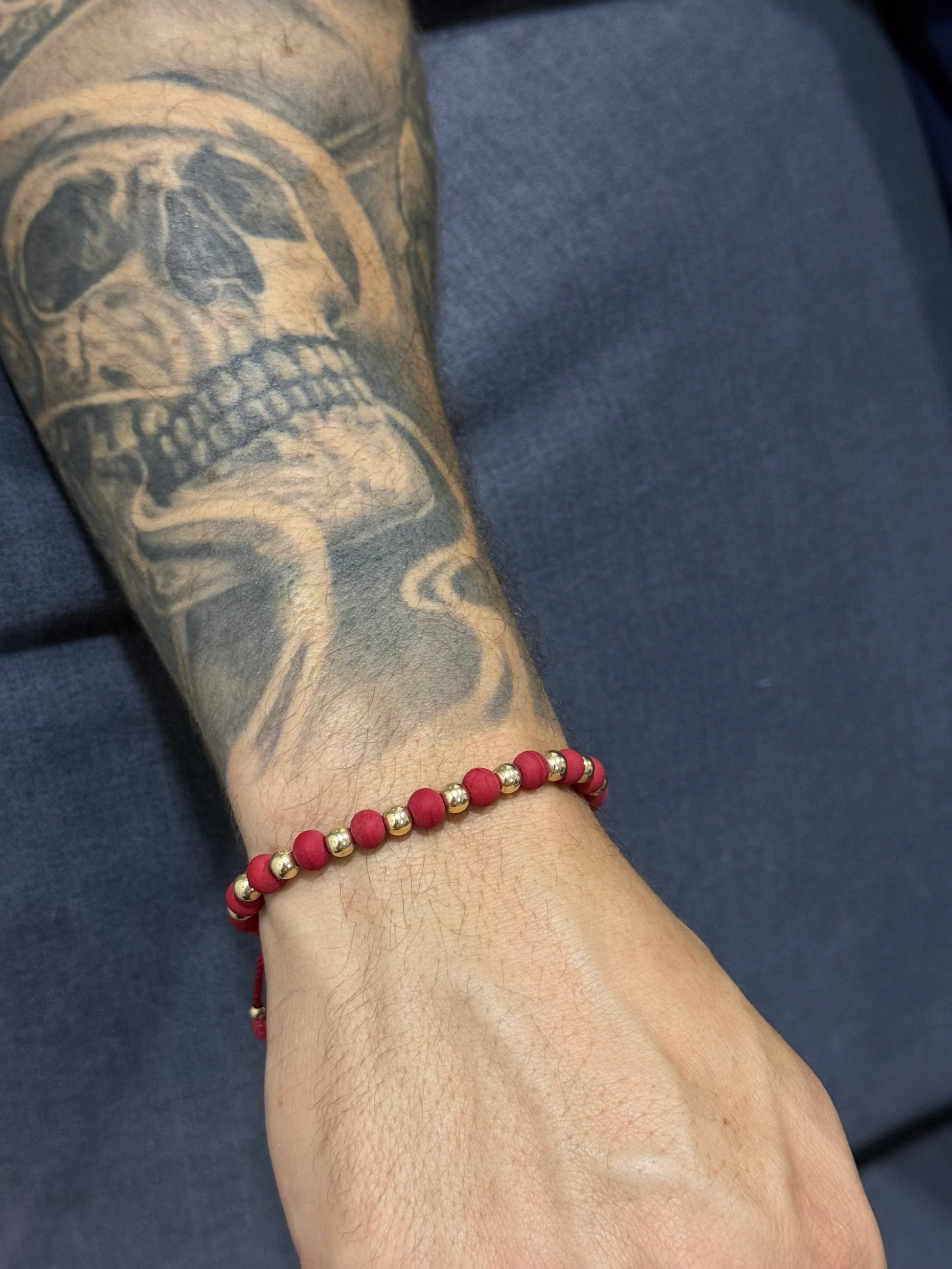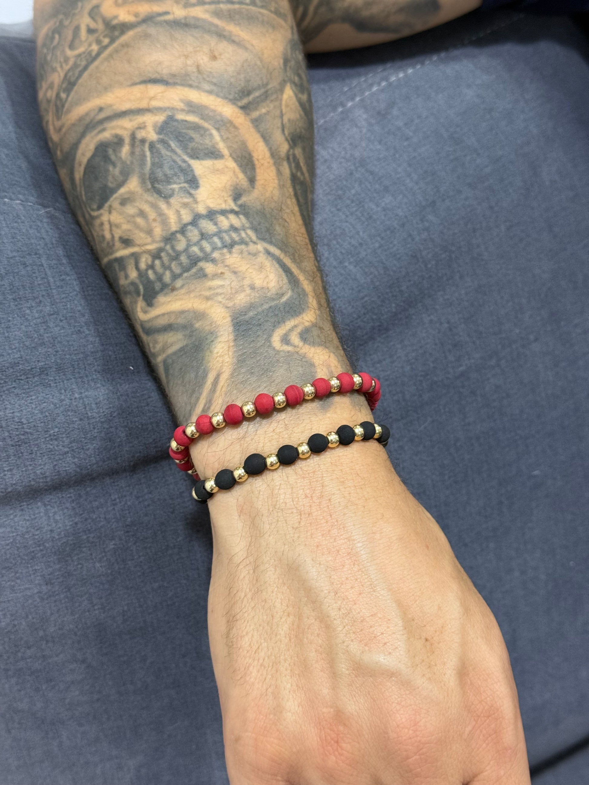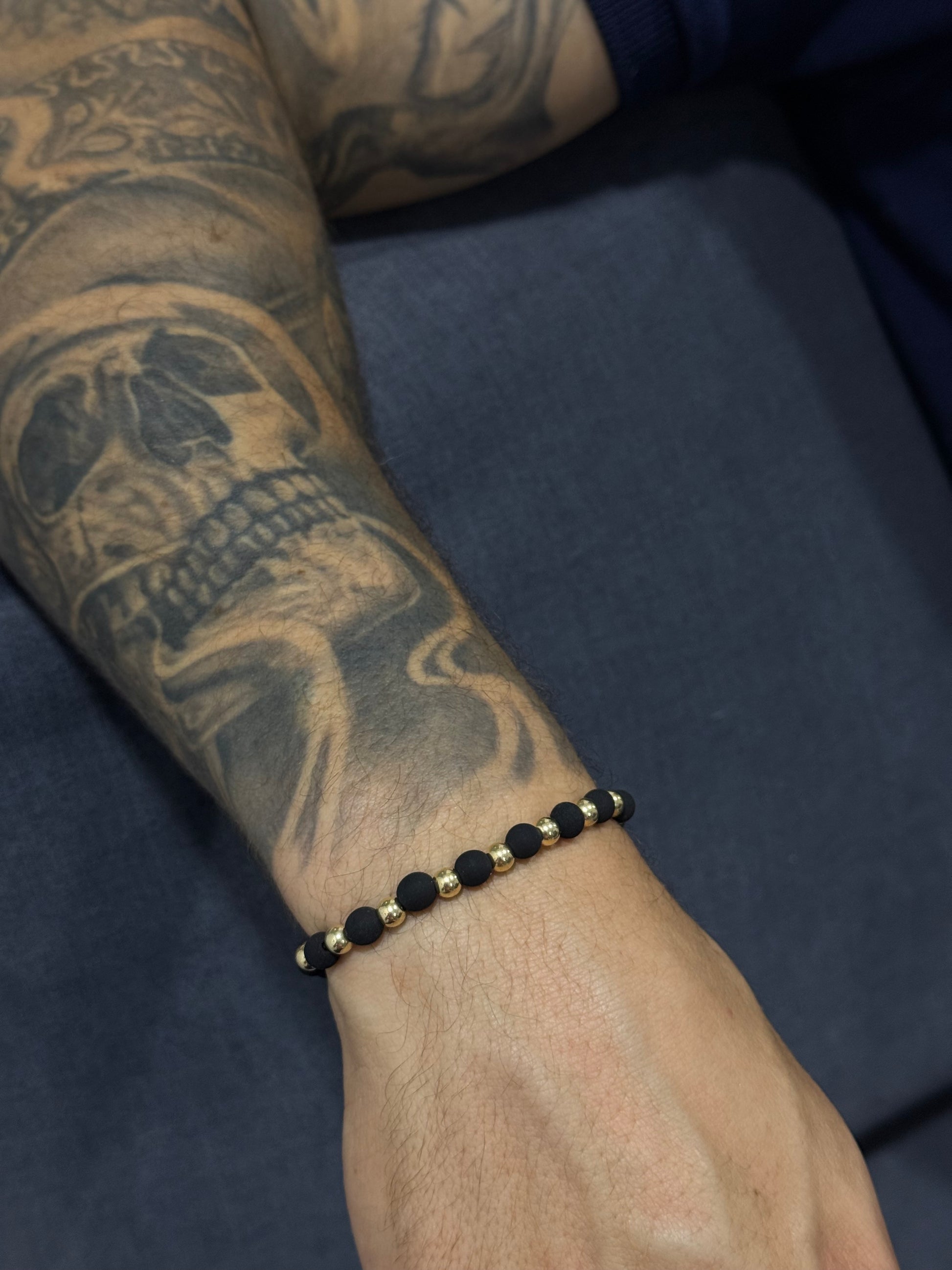 Elegancia y estilo son dos cosas que puedes encontrar en esta pulsera con la perfecta combinación entre neopreno 6mm y oro laminado 5mm, es elaborada en hilo Terlenka y perfecta para toda ocasión.
