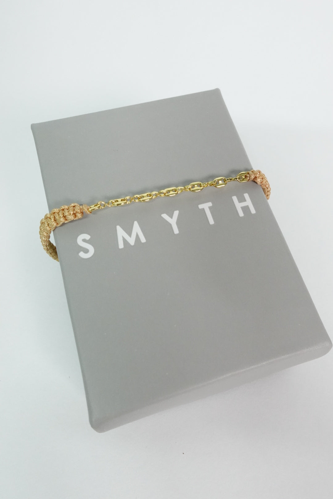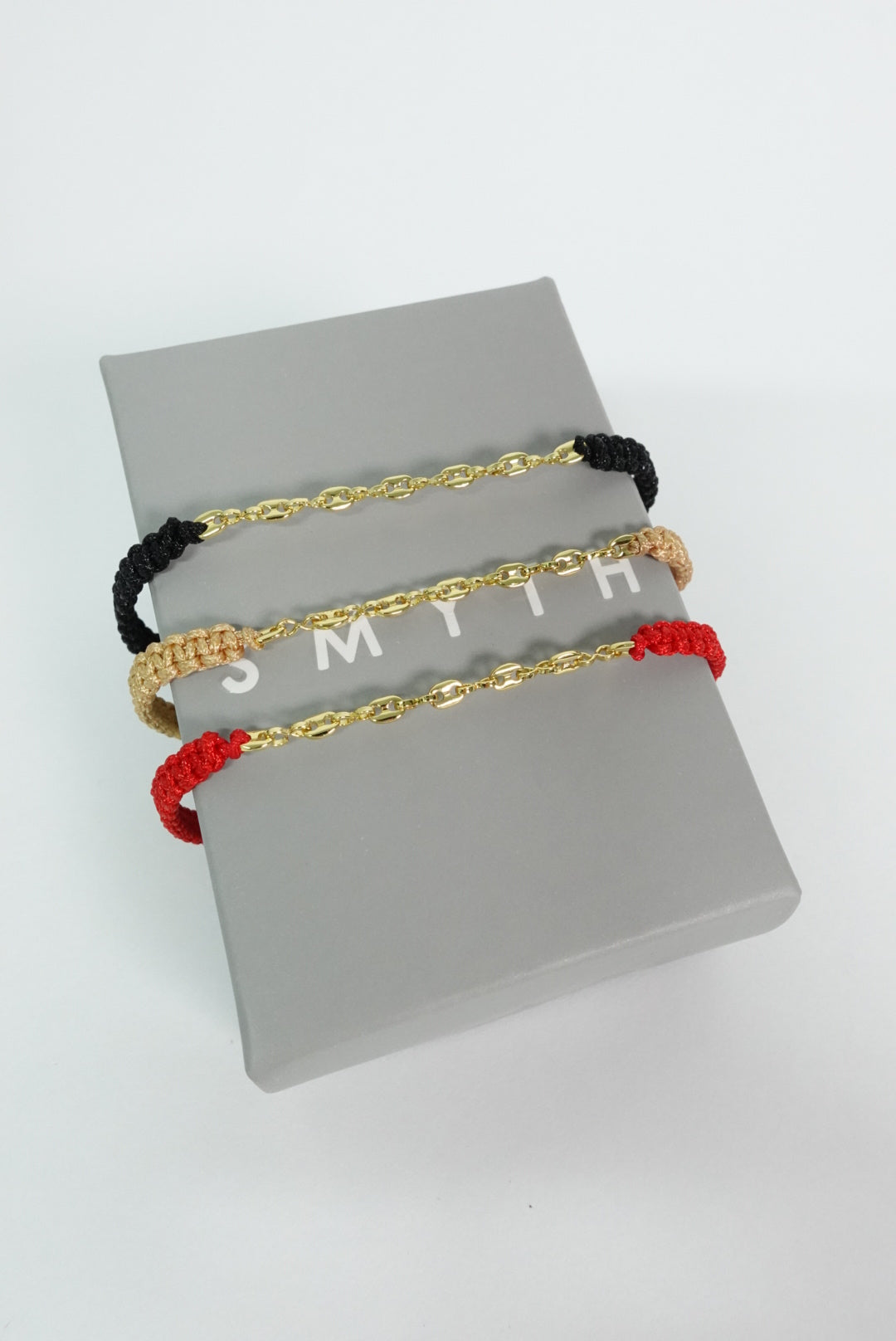 Pulsera mixta con tejido en hilo y tejido en oro laminado 18k.