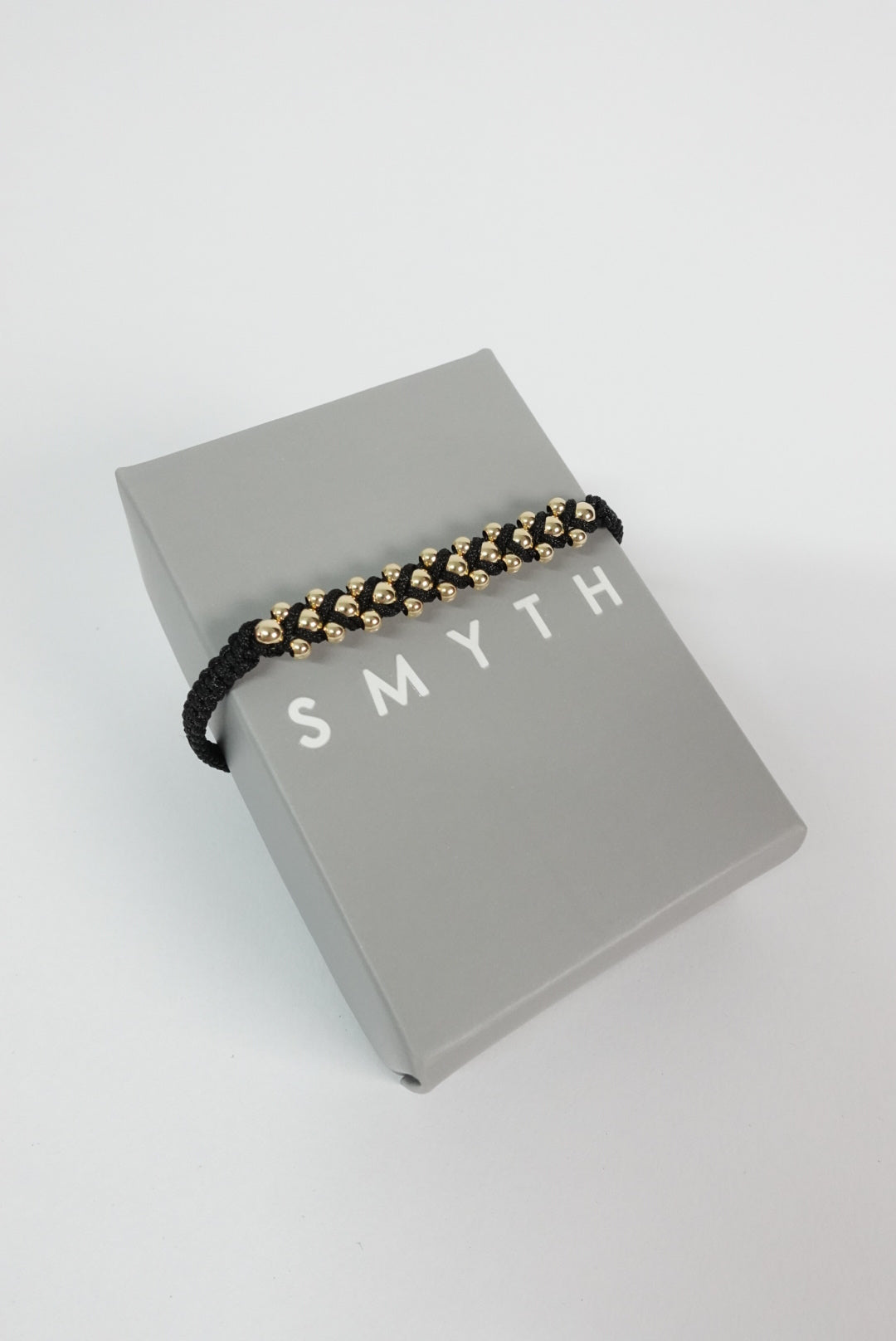 Pulsera elaborada en hilo con un tejido especial y acompañada de balines 4mm y 3mm.