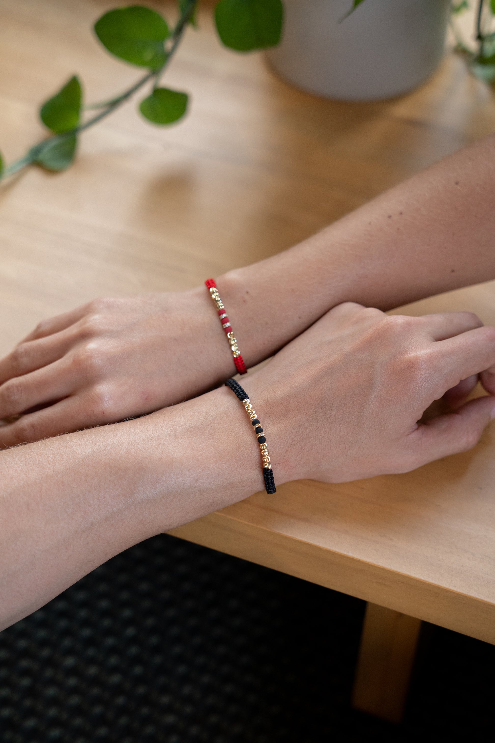 Pulsera elaborada en hilo, con balines italianos* 4mm en oro laminado, un rondel cristal y neopreno.