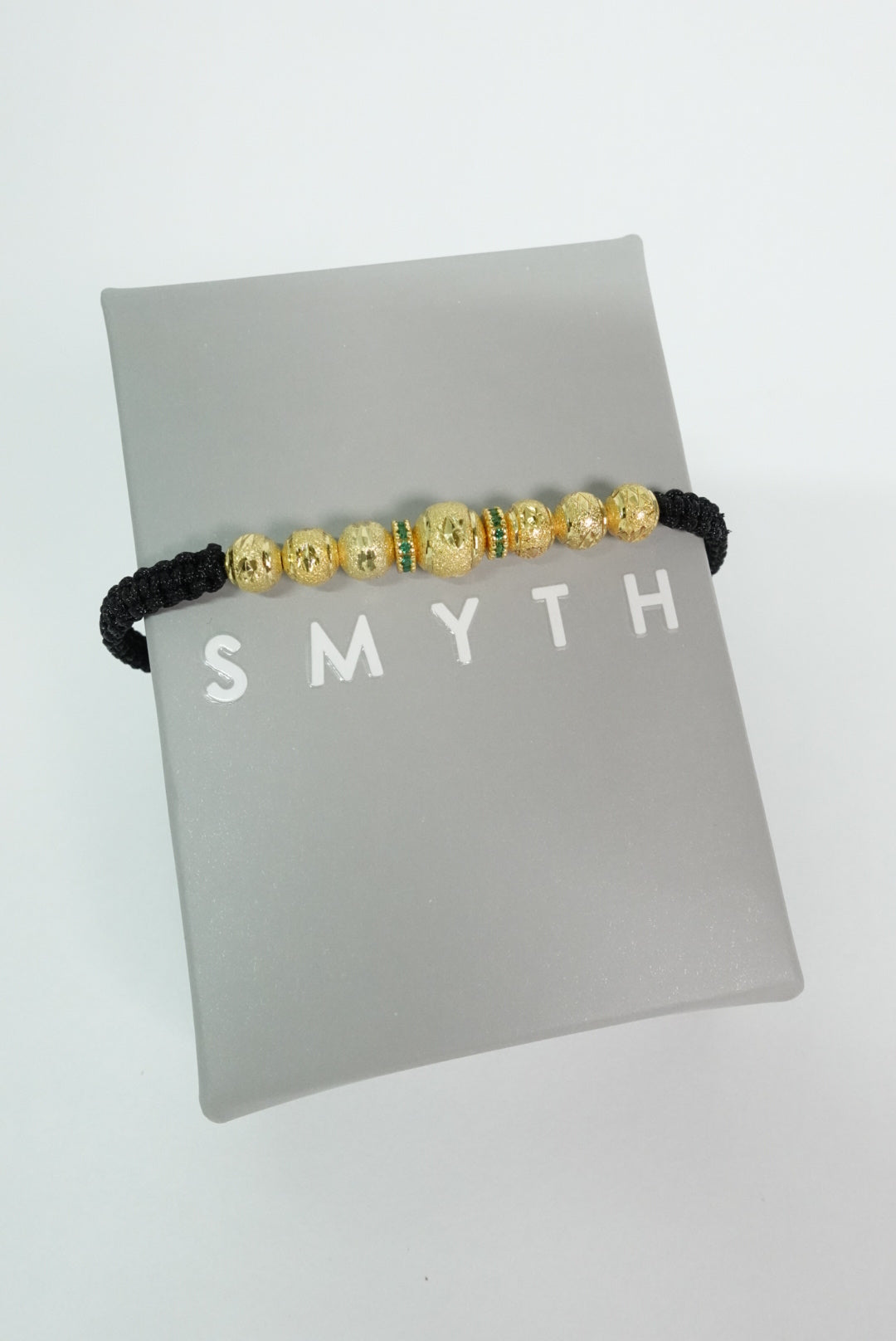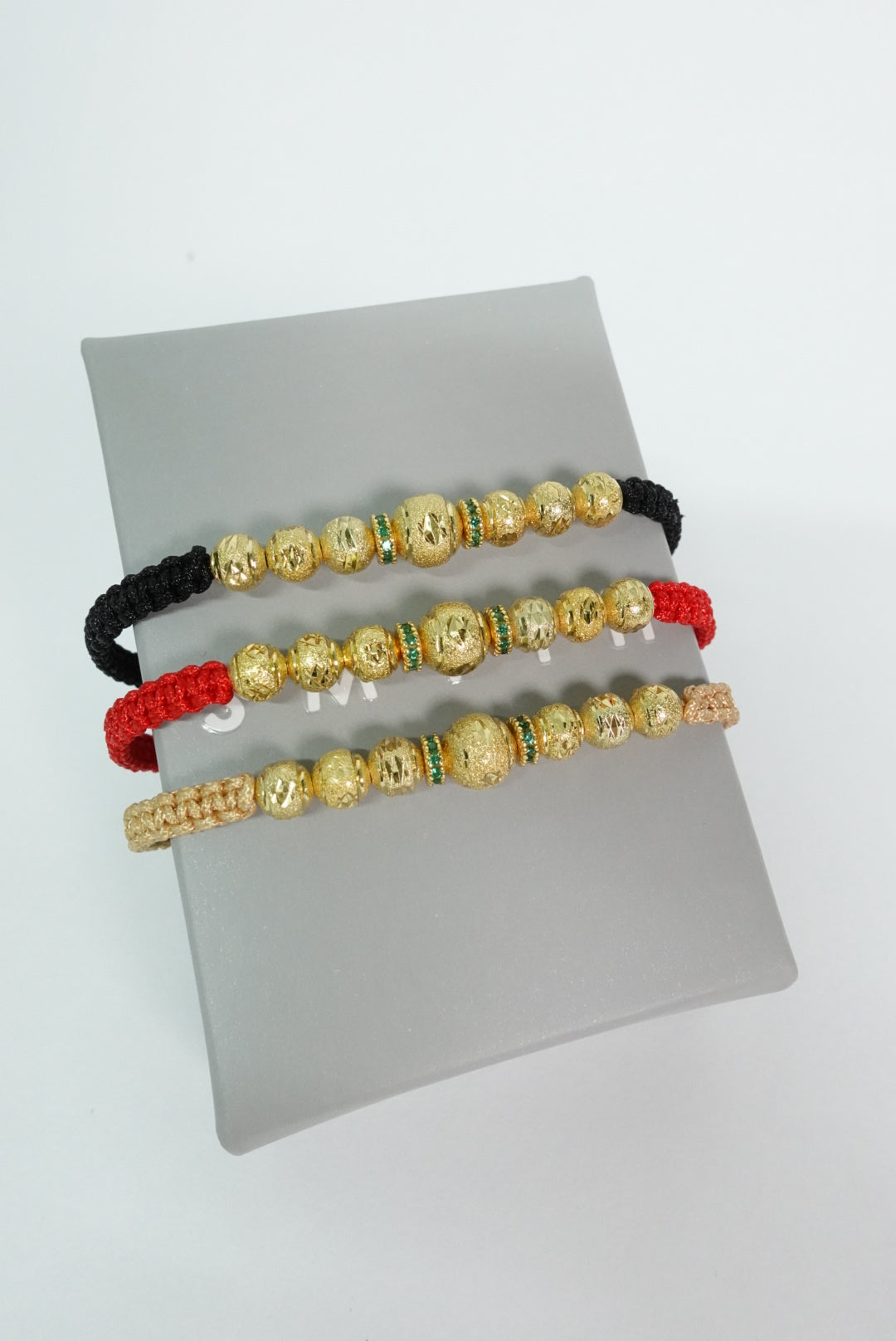 Pulsera elaborada en hilo, con balines diamantados 6 y 8mm, y rondeles verdes,