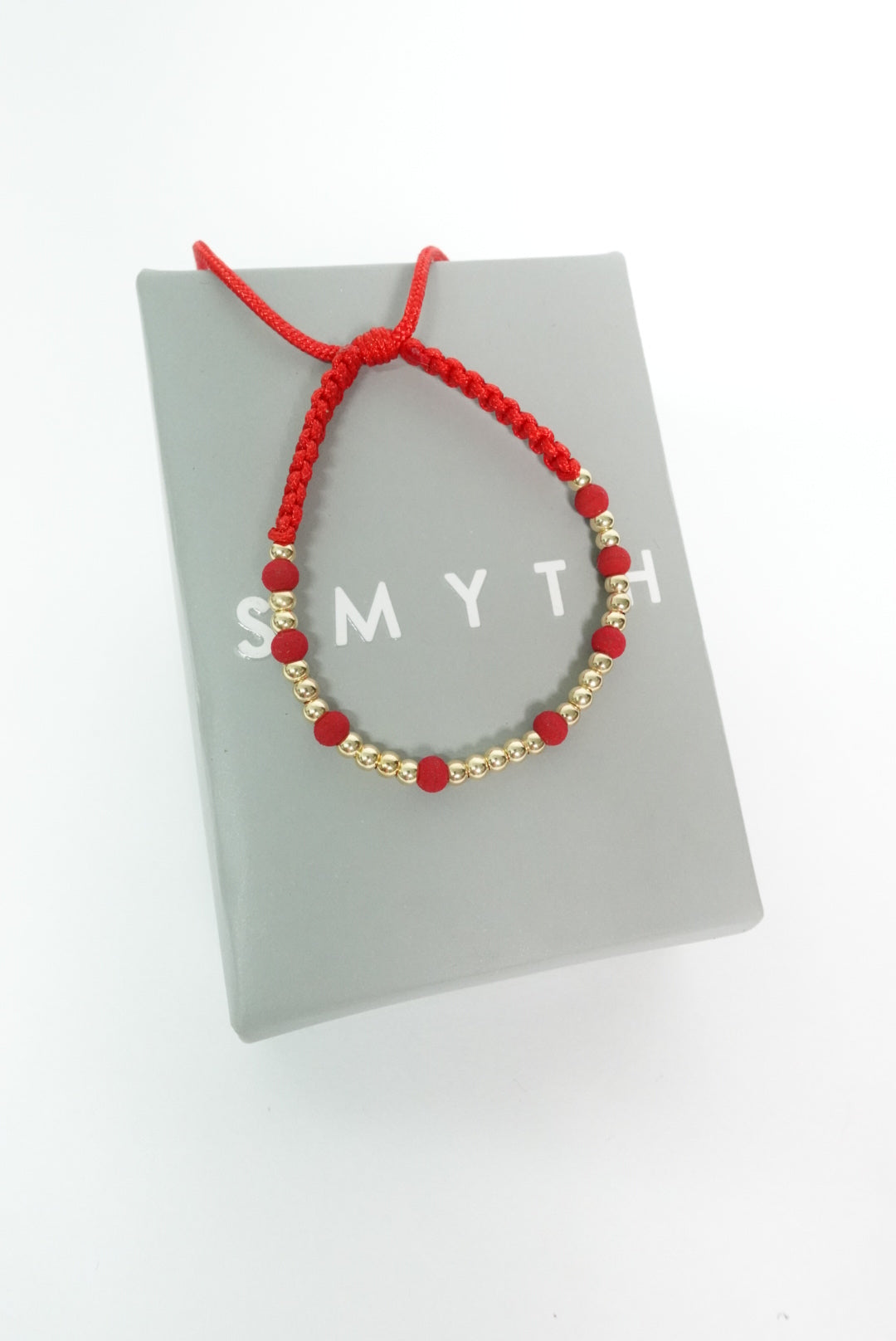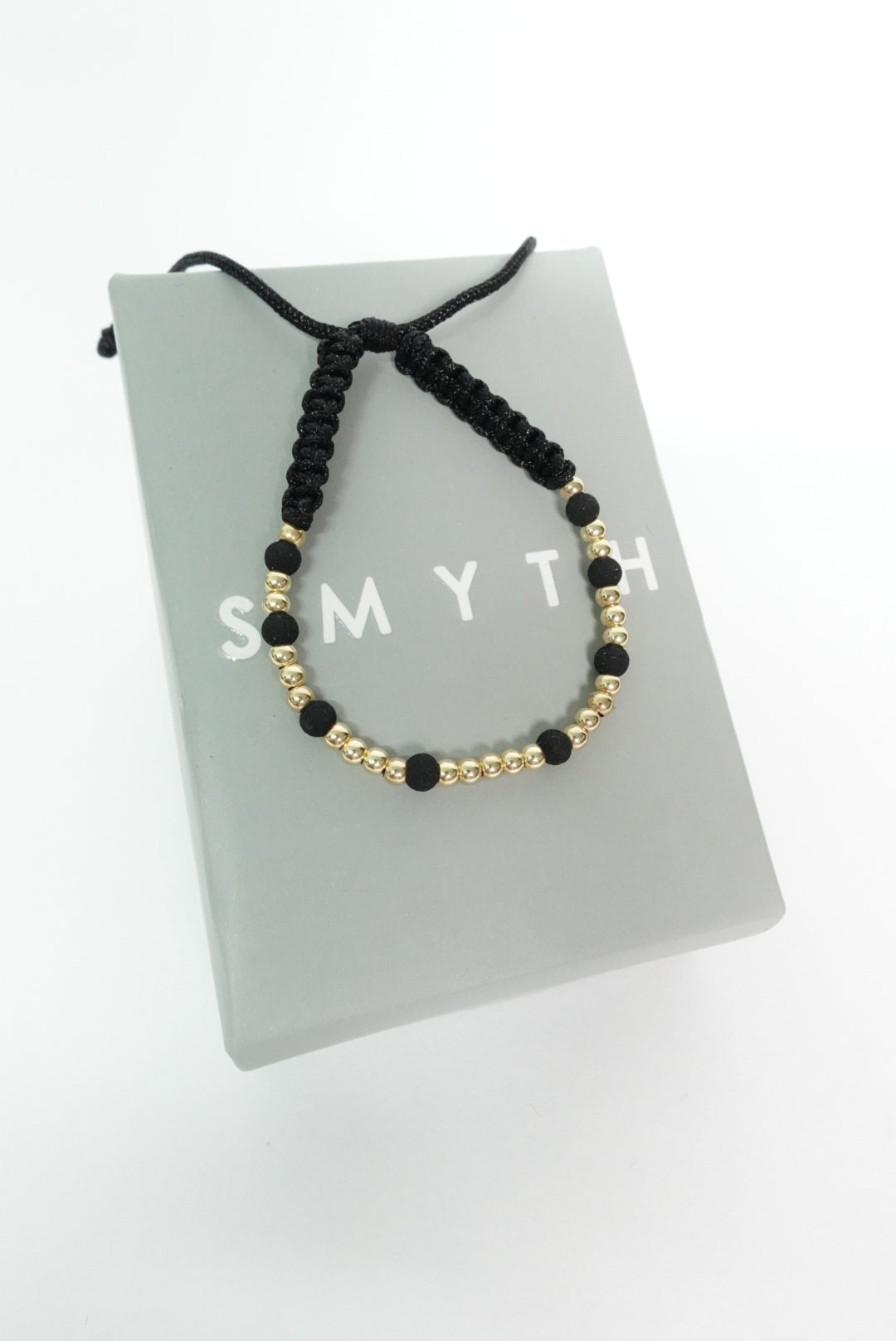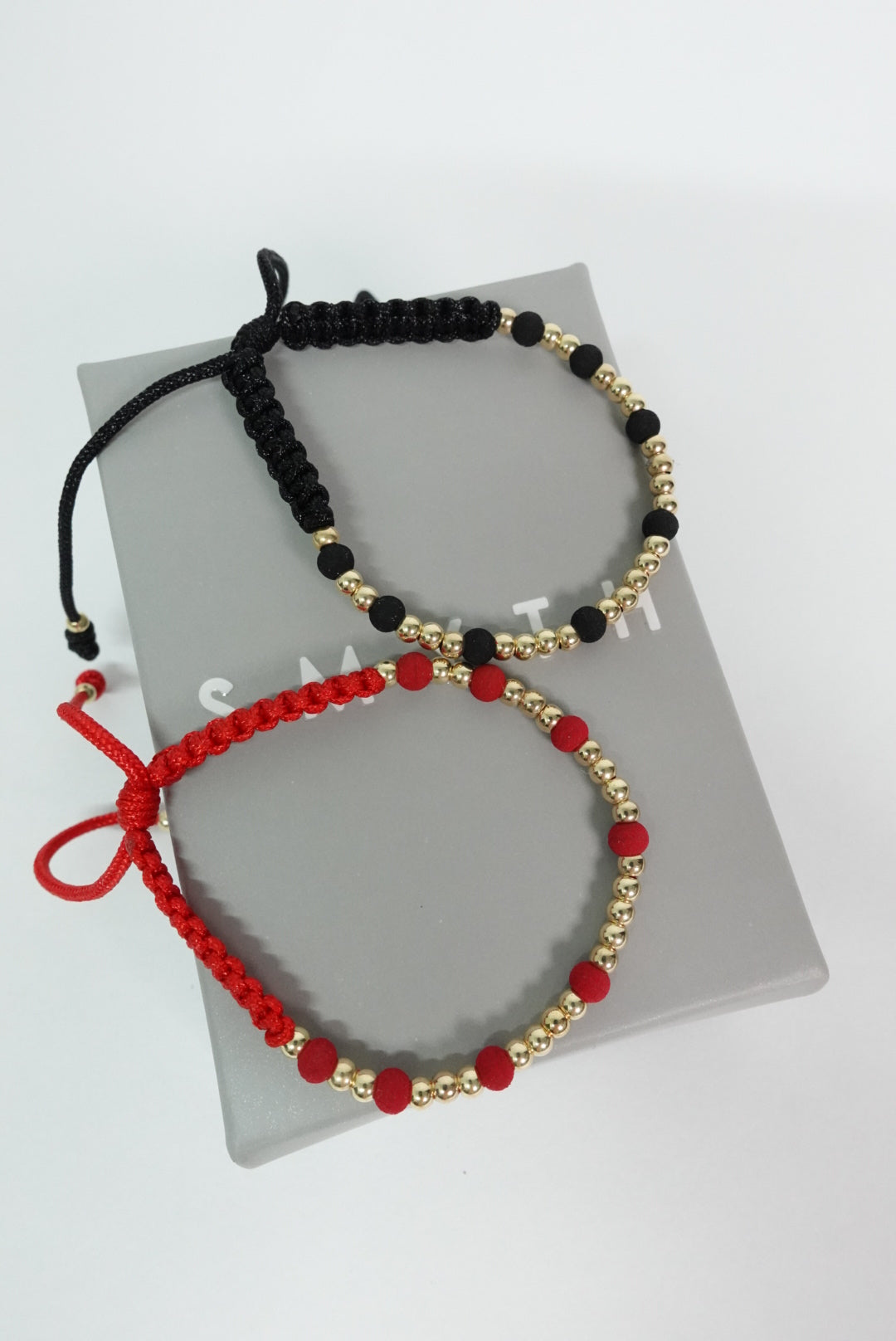 Pulsera elaborada en hilo, con balines 3mm en oro laminado 18k y neopreno.
