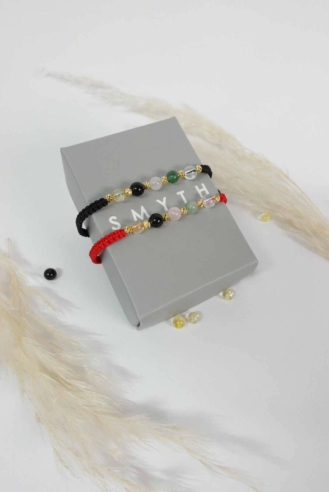 Esta pulsera es elaborada en hilo del color de tu preferencia, en esta oportunidad la traemos en rojo y negro,  se acompaña de piedras naturales con un significado muy especial, y balines en oro laminado 4mm.